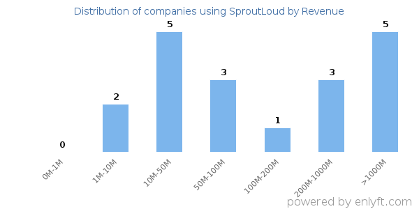We have data on 20 companies that use SproutLoud. The companies using SproutLoud are most often found in United States and in the Marketing and Advertising industry. SproutLoud is most often used by companies with 50-200 employees and 10M-50M dollars in revenue. Our data for SproutLoud usage goes back as far as 8 years and 2 months.