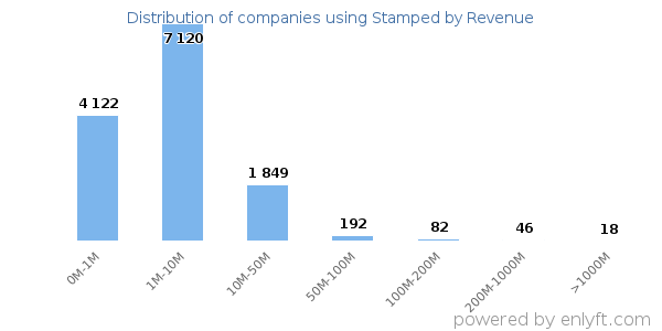 Of all the customers that are using Stamped, a majority (69%) are small (<$50M), 8% are large (>$1000M) and 16% are medium-sized.