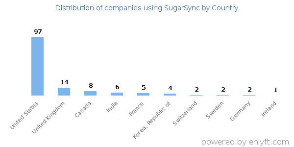 63% of SugarSync customers are in United States and 9% are in United Kingdom.