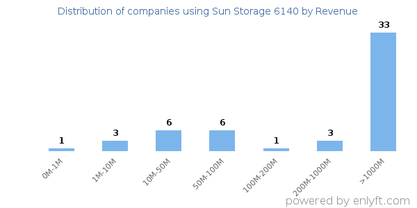We have data on 55 companies that use Sun Storage 6140. The companies using Sun Storage 6140 are most often found in United States and in the Information Technology and Services industry. Sun Storage 6140 is most often used by companies with >10000 employees and >1000M dollars in revenue. Our data for Sun Storage 6140 usage goes back as far as 9 years and 3 months.