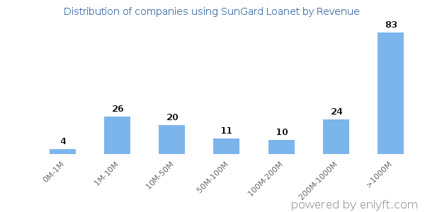We have data on 188 companies that use SunGard Loanet. The companies using SunGard Loanet are most often found in United States and in the Financial Services industry. SunGard Loanet is most often used by companies with >10000 employees and >1000M dollars in revenue. Our data for SunGard Loanet usage goes back as far as 10 years and 3 months.