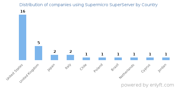 We have data on 31 companies that use Supermicro SuperServer. The companies using Supermicro SuperServer are most often found in United States and in the Information Technology and Services industry. Supermicro SuperServer is most often used by companies with >10000 employees and >1000M dollars in revenue. Our data for Supermicro SuperServer usage goes back as far as 9 years and 2 months.