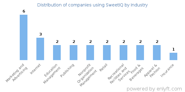 We have data on 37 companies that use SweetIQ. The companies using SweetIQ are most often found in United States and in the Marketing and Advertising industry. SweetIQ is most often used by companies with 1000-5000 employees and >1000M dollars in revenue. Our data for SweetIQ usage goes back as far as 6 years and 1 months.