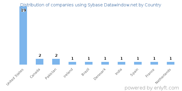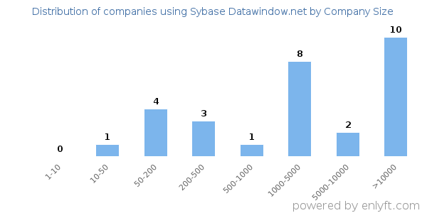 We have data on 30 companies that use Sybase Datawindow.net. The companies using Sybase Datawindow.net are most often found in United States and in the Information Technology and Services industry. Sybase Datawindow.net is most often used by companies with >10000 employees and >1000M dollars in revenue. Our data for Sybase Datawindow.net usage goes back as far as 9 years and 3 months.