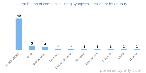 64% of Synopsys IC Validator customers are in United States, 7% are in India and 5% are in Netherlands.