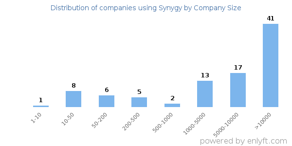 We have data on 94 companies that use Synygy. The companies using Synygy are most often found in United States and in the Information Technology and Services industry. Synygy is most often used by companies with >10000 employees and >1000M dollars in revenue. Our data for Synygy usage goes back as far as 9 years and 2 months.