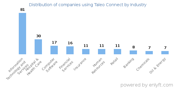 We have data on 323 companies that use Taleo Connect. The companies using Taleo Connect are most often found in United States and in the Information Technology and Services industry. Taleo Connect is most often used by companies with >10000 employees and >1000M dollars in revenue. Our data for Taleo Connect usage goes back as far as 9 years and 3 months.