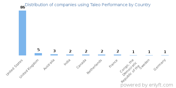 We have data on 109 companies that use Taleo Performance. The companies using Taleo Performance are most often found in United States and in the Information Technology and Services industry. Taleo Performance is most often used by companies with >10000 employees and >1000M dollars in revenue. Our data for Taleo Performance usage goes back as far as 9 years and 3 months.