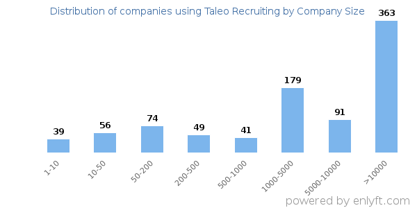 Of all the customers that are using Taleo Recruiting, a majority (70%) are large (>1000 employees), 10% are small (<50 employees) and 18% are medium-sized.