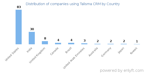 58% of Talisma CRM customers are in United States and 20% are in India.