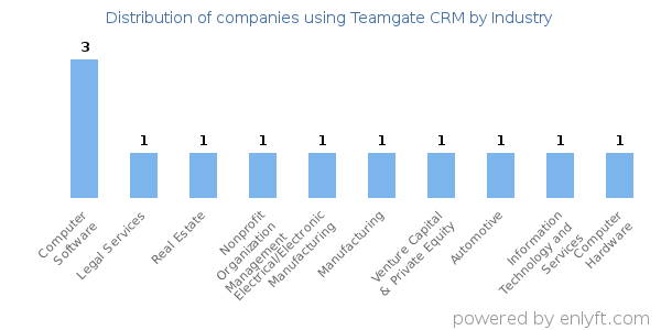 We have data on 14 companies that use Teamgate CRM. The companies using Teamgate CRM are most often found in United Kingdom and in the Computer Software industry. Teamgate CRM is most often used by companies with 50-200 employees and 1M-10M dollars in revenue. Our data for Teamgate CRM usage goes back as far as 4 years.