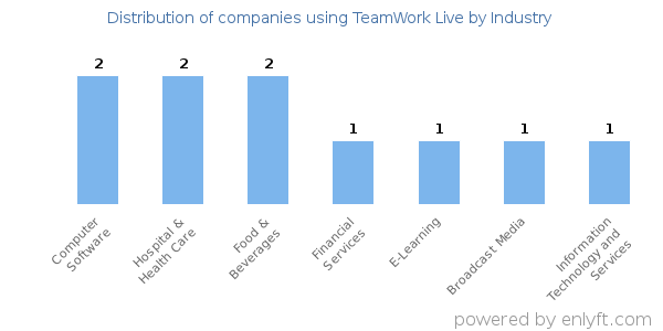 Looking at TeamWork Live customers by industry, we find that Computer Software (10%), Hospital & Health Care (10%) and Food & Beverages (10%) are the largest segments.