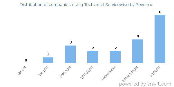 We have data on 21 companies that use Techexcel Servicewise. The companies using Techexcel Servicewise are most often found in United States and in the Information Technology and Services industry. Techexcel Servicewise is most often used by companies with 1000-5000 employees and >1000M dollars in revenue. Our data for Techexcel Servicewise usage goes back as far as 2 years and 6 months.