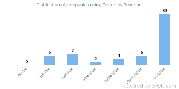 Of all the customers that are using Tevron, a majority (62%) are large (>$1000M), 20% are small (<$50M) and 6% are medium-sized.