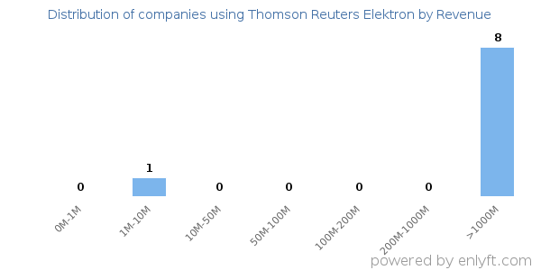 Of all the customers that are using Thomson Reuters Elektron, a majority (75%) are large (>$1000M), 0% are small (<$50M) and 0% are medium-sized.