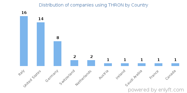 We have data on 49 companies that use THRON. The companies using THRON are most often found in Italy and in the Information Technology and Services industry. THRON is most often used by companies with >10000 employees and 10M-50M dollars in revenue. Our data for THRON usage goes back as far as 8 years and 3 months.