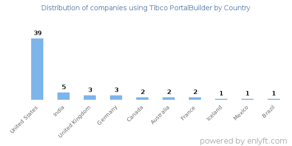 62% of Tibco PortalBuilder customers are in United States and 7% are in India.