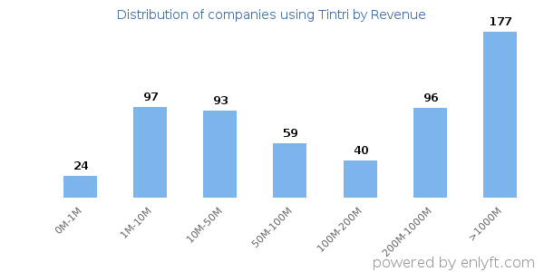 We have data on 603 companies that use Tintri. The companies using Tintri are most often found in United States and in the Information Technology and Services industry. Tintri is most often used by companies with >10000 employees and >1000M dollars in revenue. Our data for Tintri usage goes back as far as 9 years and 2 months.