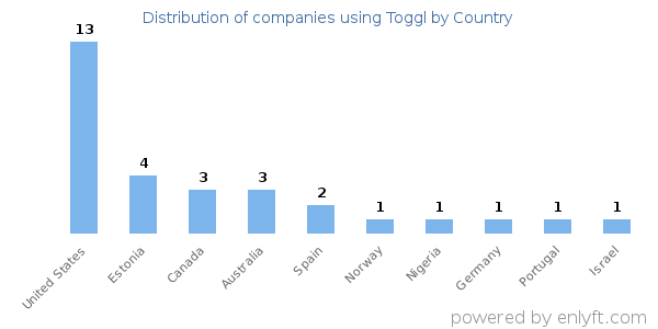 We have data on 31 companies that use Toggl. The companies using Toggl are most often found in United States and in the Computer Software industry. Toggl is most often used by companies with 10-50 employees and 1M-10M dollars in revenue. Our data for Toggl usage goes back as far as 6 years and 1 months.