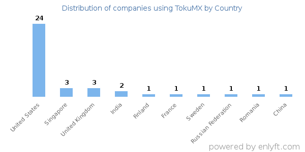We have data on 40 companies that use TokuMX. The companies using TokuMX are most often found in United States and in the Computer Software industry. TokuMX is most often used by companies with >10000 employees and >1000M dollars in revenue. Our data for TokuMX usage goes back as far as 8 years and 5 months.