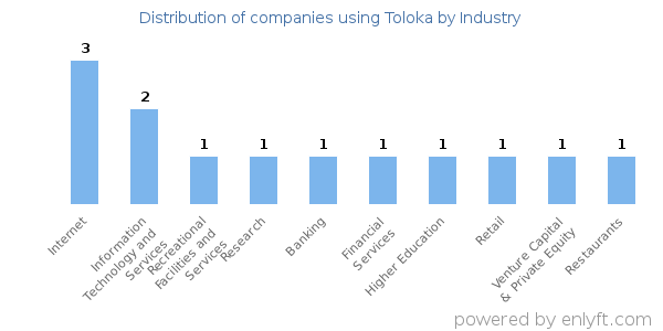 We have data on 17 companies that use Toloka. The companies using Toloka are most often found in United States and in the Internet industry. Toloka is most often used by companies with >10000 employees and >1000M dollars in revenue. Our data for Toloka usage goes back as far as 1 years and 6 months.