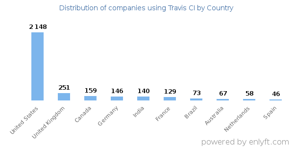 54% of Travis CI customers are in United States and 6% are in United Kingdom.