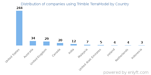 We have data on 406 companies that use Trimble TerraModel. The companies using Trimble TerraModel are most often found in United States and in the Construction industry. Trimble TerraModel is most often used by companies with 50-200 employees and 10M-50M dollars in revenue. Our data for Trimble TerraModel usage goes back as far as 9 years and 7 months.