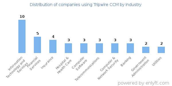 We have data on 49 companies that use Tripwire CCM. The companies using Tripwire CCM are most often found in United States and in the Information Technology and Services industry. Tripwire CCM is most often used by companies with >10000 employees and >1000M dollars in revenue. Our data for Tripwire CCM usage goes back as far as 9 years and 2 months.