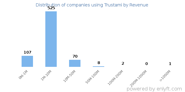 Of all the customers that are using Trustami, a majority (67%) are small (<$50M), 11% are large (>$1000M) and 22% are medium-sized.