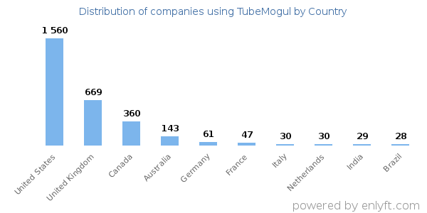 44% of TubeMogul customers are in United States, 19% are in United Kingdom and 10% are in Canada.