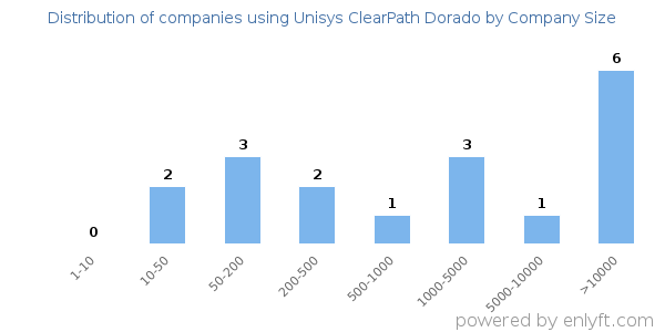 Of all the customers that are using Unisys ClearPath Dorado, 6% are small (<50 employees), 19% are medium-sized and 42% are large (>1000 employees).