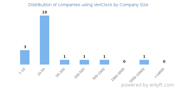 We have data on 17 companies that use VeriClock. The companies using VeriClock are most often found in United States and in the Construction industry. VeriClock is most often used by companies with 10-50 employees and 1M-10M dollars in revenue. Our data for VeriClock usage goes back as far as 3 years and 10 months.