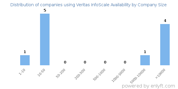 Of all the customers that are using Veritas InfoScale Availability, 41% are small (<50 employees), 0% are medium-sized and 32% are large (>1000 employees).
