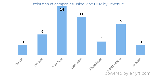We have data on 50 companies that use Vibe HCM. The companies using Vibe HCM are most often found in United States and in the Computer Software industry. Vibe HCM is most often used by companies with 200-500 employees and 10M-50M dollars in revenue. Our data for Vibe HCM usage goes back as far as 8 years and 6 months.