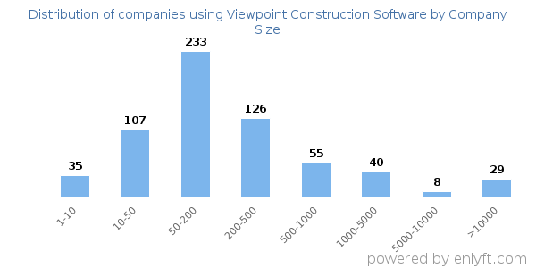 Of all the customers that are using Viewpoint Construction Software, a majority (65%) are medium-sized, 12% are large ( >1000 employees) and 22 are small (<50 employees).