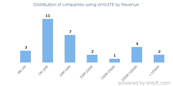 Of all the customers that are using vinSUITE, a majority (58%) are small (<$50M), 10% are large (>$1000M) and 0% are medium-sized.