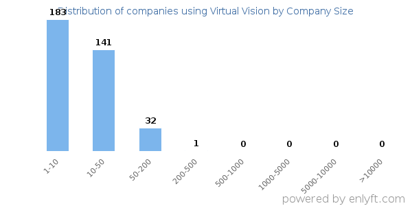 Of all the customers that are using Virtual Vision, a majority (87%) are small (<50 employees), 0% are large (>1000 employees) and 12% are medium-sized.