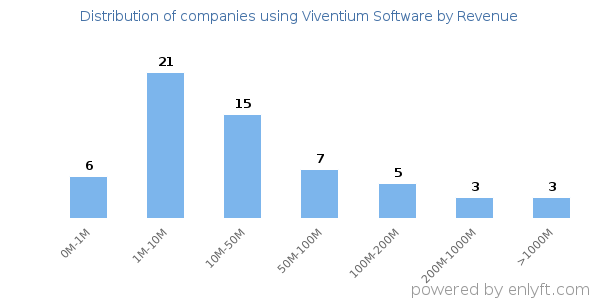 Of all the customers that are using Viventium Software, a majority (64%) are small (<$50M), 0% are large (>$1000M) and 17% are medium-sized.