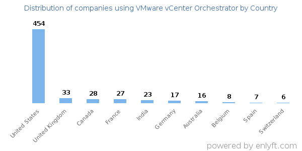We have data on 689 companies that use VMware vCenter Orchestrator. The companies using VMware vCenter Orchestrator are most often found in United States and in the Information Technology and Services industry. VMware vCenter Orchestrator is most often used by companies with >10000 employees and >1000M dollars in revenue. Our data for VMware vCenter Orchestrator usage goes back as far as 9 years and 10 months.