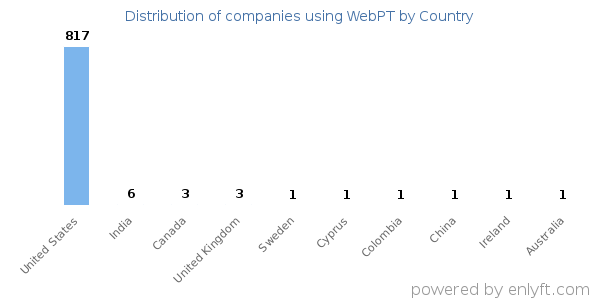 We have data on 843 companies that use WebPT. The companies using WebPT are most often found in United States and in the Hospital & Health Care industry. WebPT is most often used by companies with 10-50 employees and 1M-10M dollars in revenue. Our data for WebPT usage goes back as far as 8 years and 2 months.