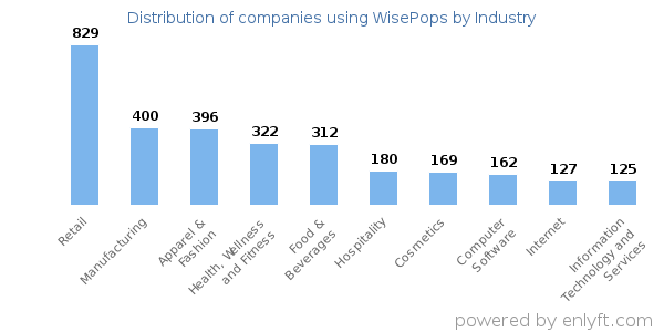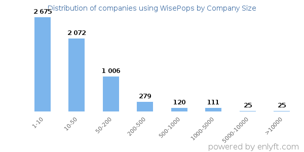We have data on 7,649 companies that use WisePops. The companies using WisePops are most often found in United States and in the Retail industry. WisePops is most often used by companies with 1-10 employees and 1M-10M dollars in revenue. Our data for WisePops usage goes back as far as 8 years and 5 months.