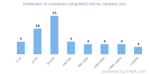 We have data on 50 companies that use WizIQ LMS. The companies using WizIQ LMS are most often found in United States and in the Higher Education industry. WizIQ LMS is most often used by companies with 50-200 employees and 1M-10M dollars in revenue. Our data for WizIQ LMS usage goes back as far as 8 years and 2 months.