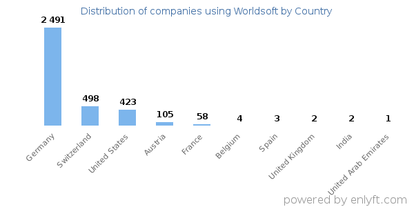 60% of Worldsoft customers are in Germany, 13% are in Switzerland and 11% are in United States.