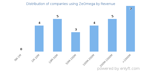 We have data on 29 companies that use ZeOmega. The companies using ZeOmega are most often found in United States and in the Hospital & Health Care industry. ZeOmega is most often used by companies with 1000-5000 employees and >1000M dollars in revenue. Our data for ZeOmega usage goes back as far as 2 years and 5 months.